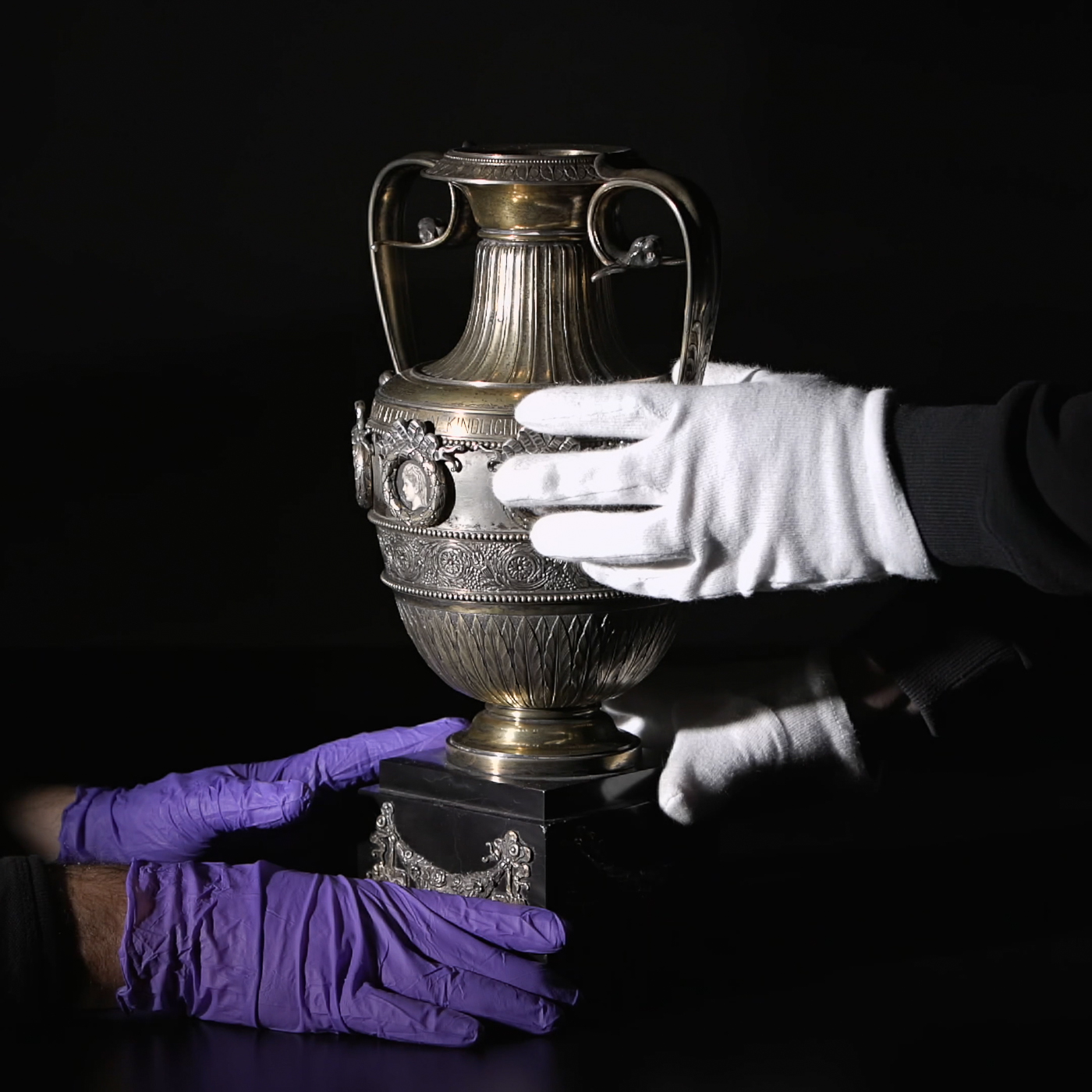 The exhibition features a film installation at two sites. It starts at the Jewish Museum Vienna, which stands symbolically for the looted objects and their rightful owners. Here, their stories are told and the looted objects are shown as they are packed for transport. At the Wien Museum, visitors observe their unpacking and incorporation in the Städtische Sammlungen (Municipal Collections).
